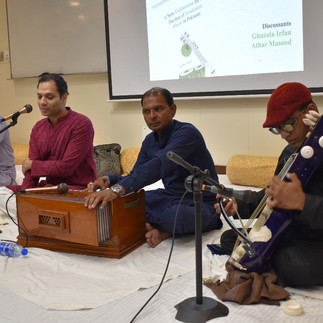 The evening concluded with a live performance by Kabir Altaf, where music itself became a mode of pedagogy. He performed khayāl, dardā, and ghazal, carefully distinguishing their tonal and emotional registers. Not only did he elucidate the distinct structure and mood of each form, but he also wove a mellifluous atmosphere that resonated deeply, drawing the audience into a shared moment of lyrical contemplation. The performance stood as a living testament to the depth and adaptability of classical music, even in a time of perceived decline.