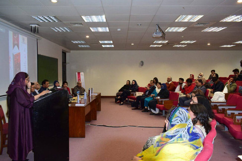 Dr Tabassum Kashmiri, a literary historian and critic, presided over the session, and Dr Najeeb Jamal, an Urdu critic and renowned researcher, joined the panel as a special guest. The hosts of the event were the editors of the book, Dr Nayyar and Dr Shaista Hassan. Present among the discussants were contributors to the manual from Lahore whose scholarly insights have added great value to this impactful project: Dr Nasrullah, Dr Fatima Fayyaz, Dr Ammara Rasheed, Dr Ambreen Salahuddin, and Dr Aurangzeb Niazi. They all unanimously agreed that the Gurmani Manual addressed fundamental issues related to research and academic writing and praised the Centre for undertaking this important project. Dr Nadhra Shahbaz Khan, Director Gurmani Centre, explained that the book has been named after the Gurmani Foundation to highlight the Centre’s endeavours and to broadcast the Gurmani legacy far and wide.